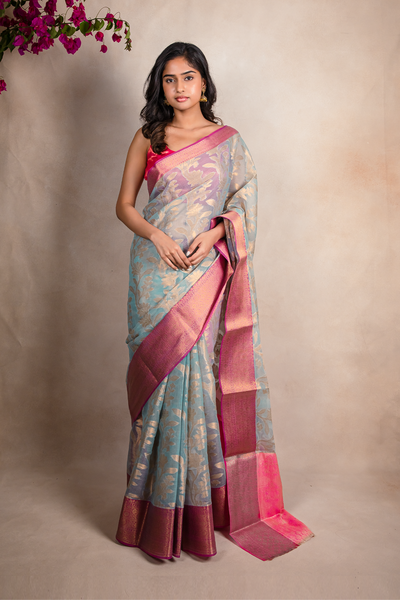 Disclaimer: The actual colour may vary slightly due to different screen calibration. Hand woven sarees have slight imperfections which itself is a beauty of handmade sarees.